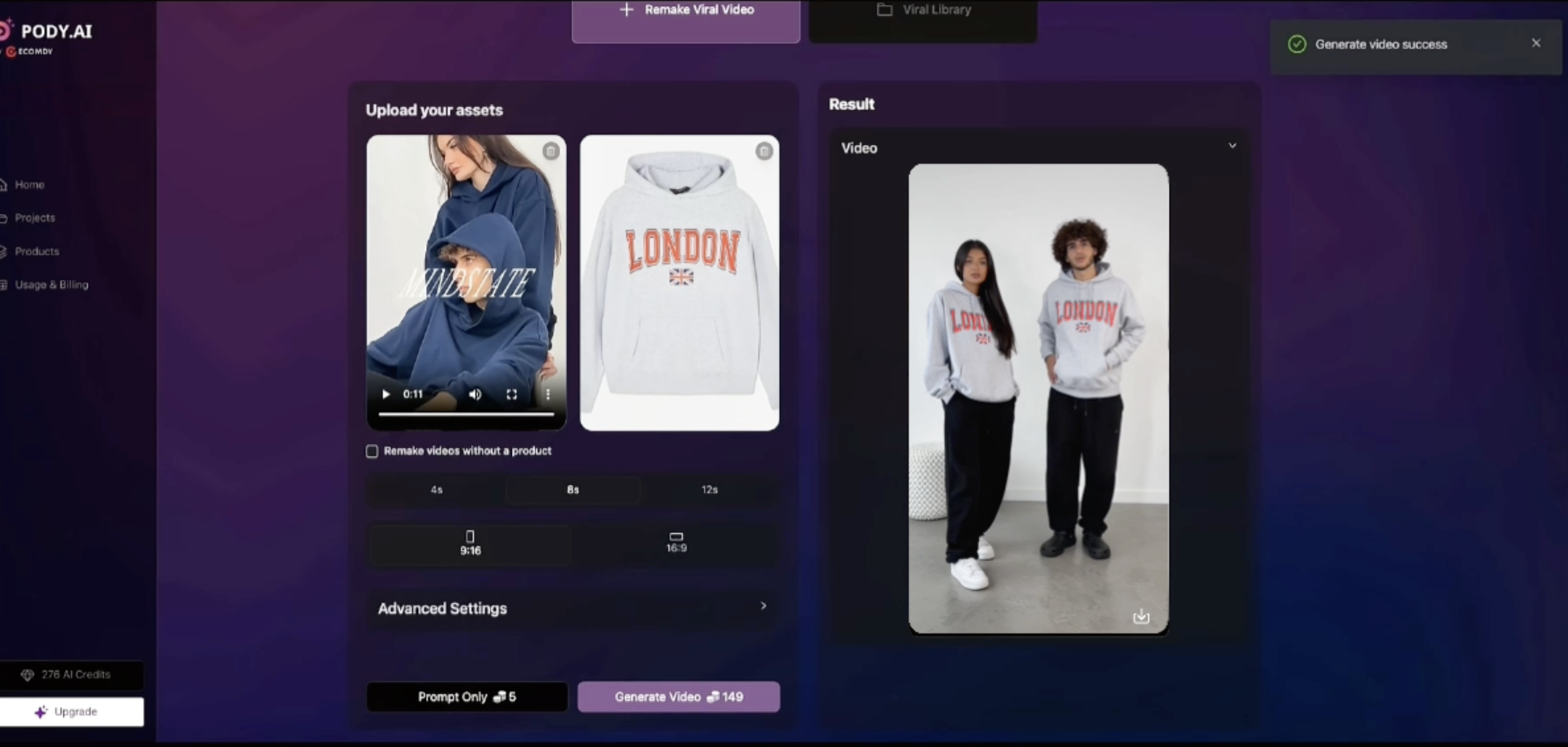 Instead of creating new concepts from scratch, Smart Remake helps you reuse proven video structures to produce new advertising creatives faster, reduce testing time, and scale winning campaigns efficiently. Users can generate videos directly within Pody.ai or obtain ready-to-use prompts to create videos on other AI video platforms.