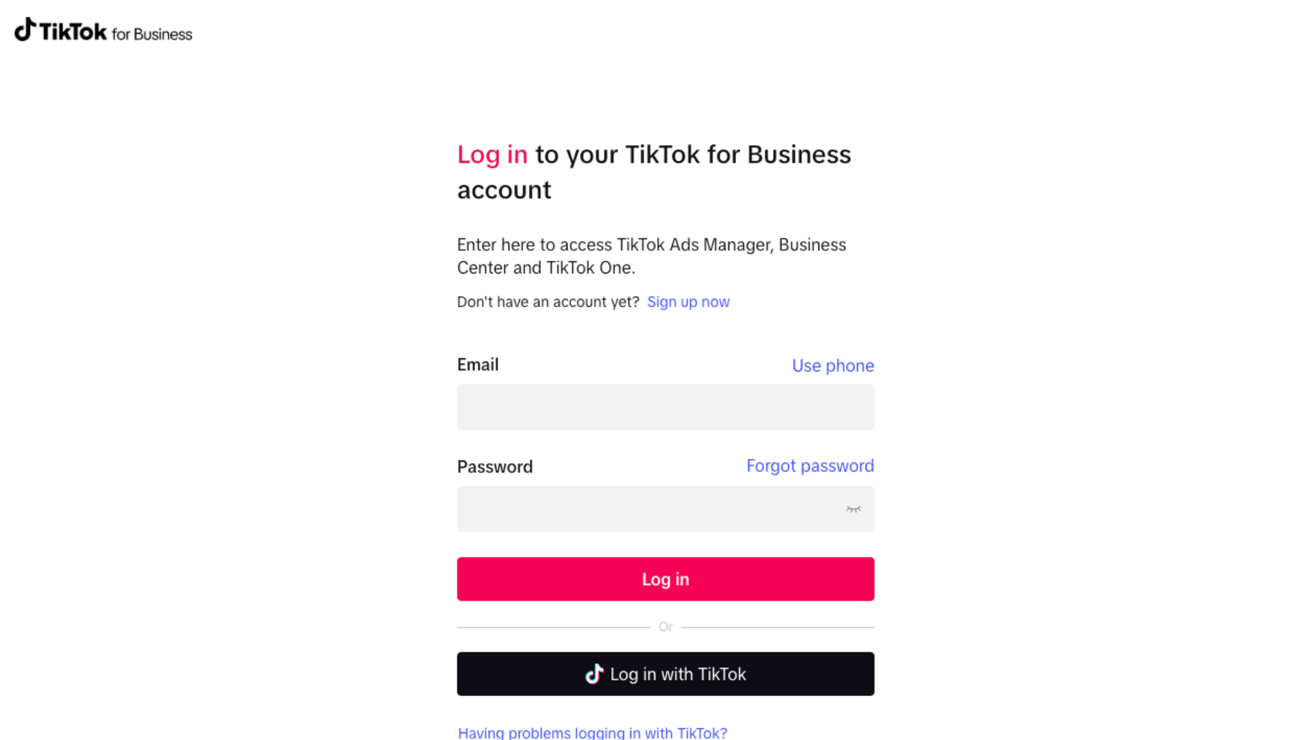 If you are not logged in to your TikTok For Business account, you will be prompted to log in